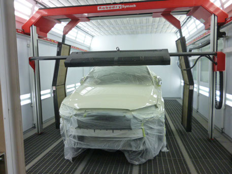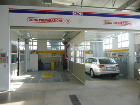 La Verniciatura viene eseguita nelle cabine Cmc con l’ausilio della moderna attrezzatura Robotdry Symach (video YouTube) che, scorrendo sopra la vettura spruzzata, permette un’asciugatura ad alta temperatura rapida e performante.