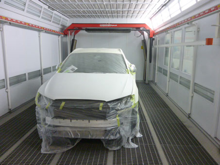 Dopo la lastratura, la vettura viene preparata in una delle nostre 6 Zone di Preparazione CMC attrezzate con impianti di essiccazione a lampade a infrarossi.