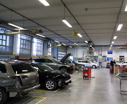 Le parti da sostituire vengono smontate, mentre quelle da riparare vengono raddrizzate. Le operazioni vengono svolte all’interno della zona Lavorazione e Lastratura, dotata di 12 sollevatori a pantografo.
